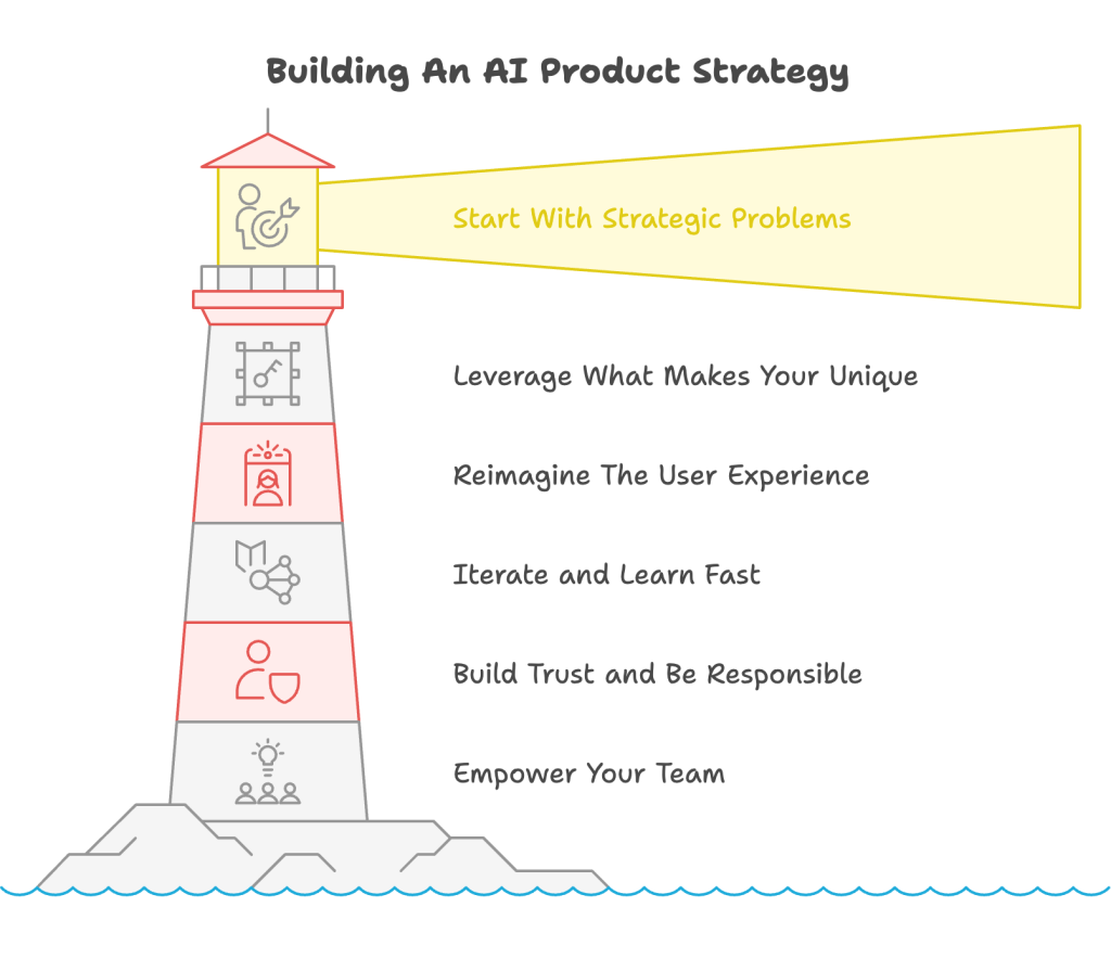 Don’t do AI for the sake of AI. Identify the most impactful customer problems or business goals where AI can make a difference and focus there first. Align every AI initiative with clear, measurable outcomes (e.g., increased retention, efficiency, revenue). Your AI product strategy needs to actually be strategic!